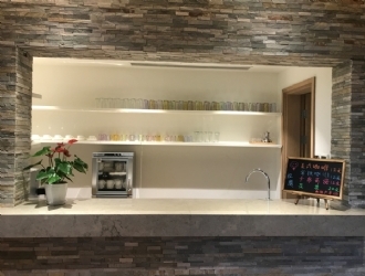 在老人用餐完畢后,我們對(duì)養(yǎng)老院的內(nèi)部娛樂場(chǎng)所以及廚房?jī)?nèi)部進(jìn)行了參觀。在養(yǎng)老院內(nèi)部設(shè)施中,隨處可見的就是老人們的娛樂場(chǎng)所。小區(qū)設(shè)有桌球、沙狐球、高爾夫推桿、健身房、乒乓房、日式浴場(chǎng)、卡拉OK室、棋牌室,還配備了景觀藏書閱覽室、劇院級(jí)多功能大廳、影院、老年大學(xué)教室、美容美發(fā)室、推拿按摩室等。為老年人營(yíng)造了一個(gè)老有所樂的社區(qū)氛圍。